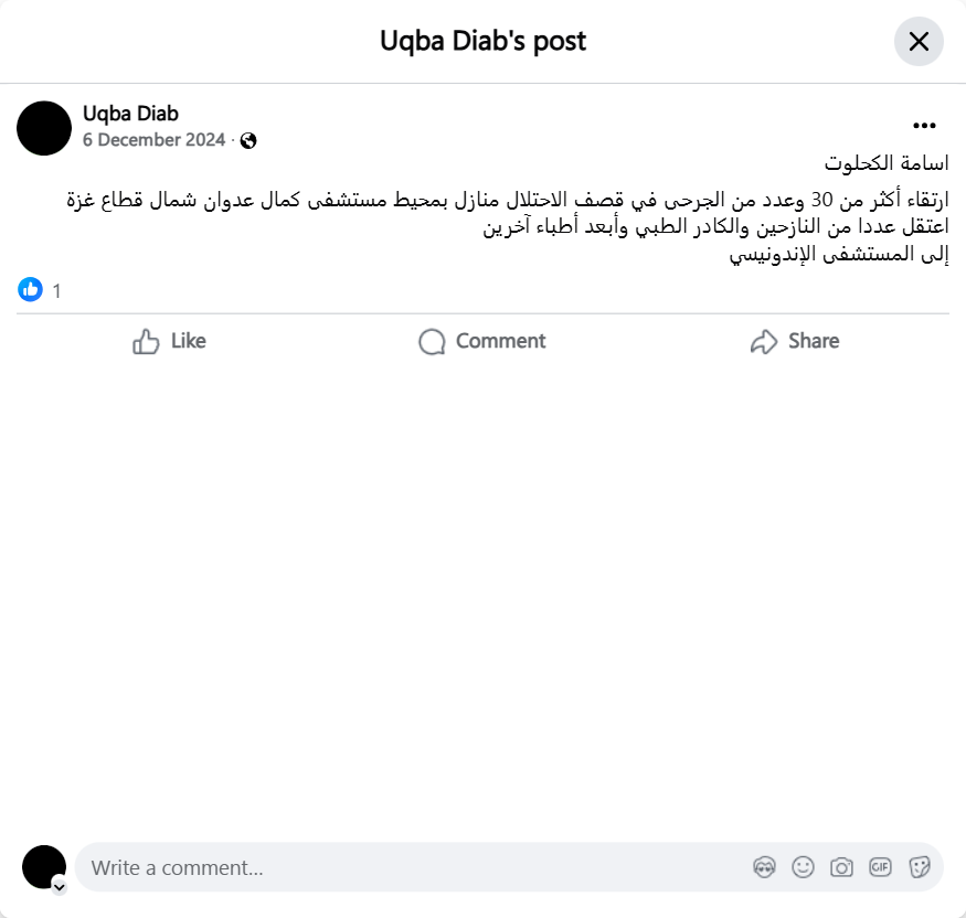 اسامة الكحلوت ارتقاء أكثر من 30 وعدد من الجرحى في قصف الاحتلال منازل بمحيط مستشفى كمال عدوان شمال قطاع غزةاعتقل عددا من النازحين والكادر الطبي وأبعد أطباء آخرين إلى المستشفى الإندونيسي