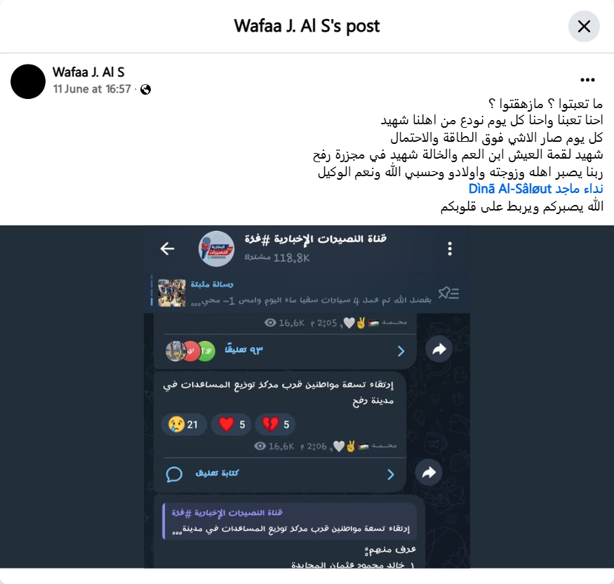 Archive URL: https://airwars.org/source/www-facebook-com-wafaa-j-al-s-pfbid0c3zdtpkhdpfcxyznxapfod5fgmppq1mw4km5kodjhsusdhn5elplp4v53cecgzygl-2025-06-11-145700/