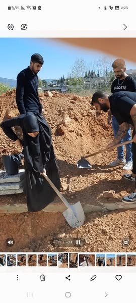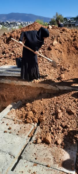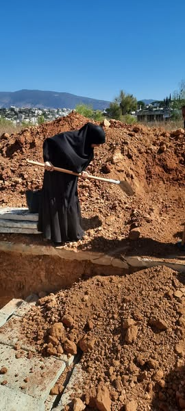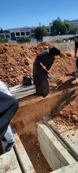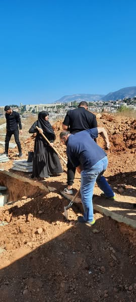 Sakina Wahbi buries the bodies of her two martyrs, her father Hajj Haidar Wahbi (Abu Abbas) and her brother Muhammad Haidar Wahbi (26 years old).