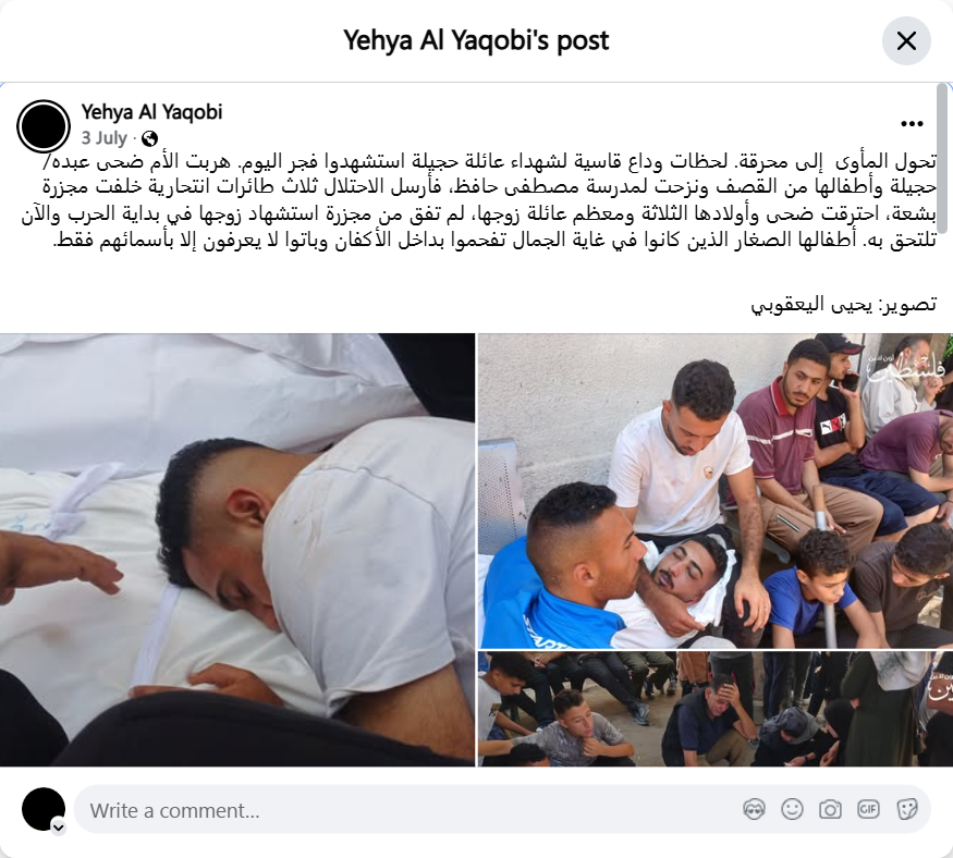 Archive URL: https://airwars.org/source/www-facebook-com-yehya-al-yaqobi-pfbid0grbihtg91zdvxxv1hwljk3cemp14xuaqnm8hjwdcbx9zwbvn6kyrcakcsemzcujql-2025-07-03-090000/
