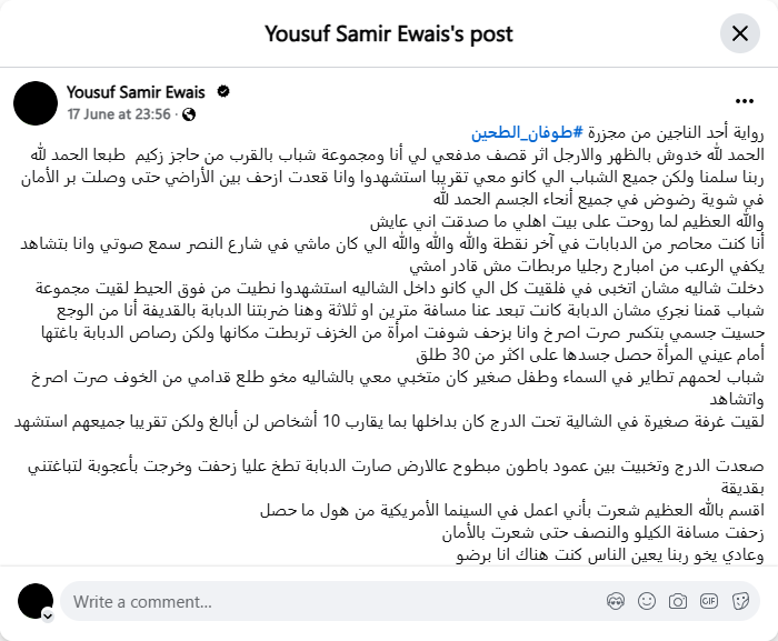 Archive URL: https://airwars.org/source/www-facebook-com-yousuf-samir-ewais-pfbid0k5f2gmrbjoeo67xwpste3eyymzzlkhzxeawggha4egj212izpfehjzku4ozsbtyjl-2025-06-17-205600/