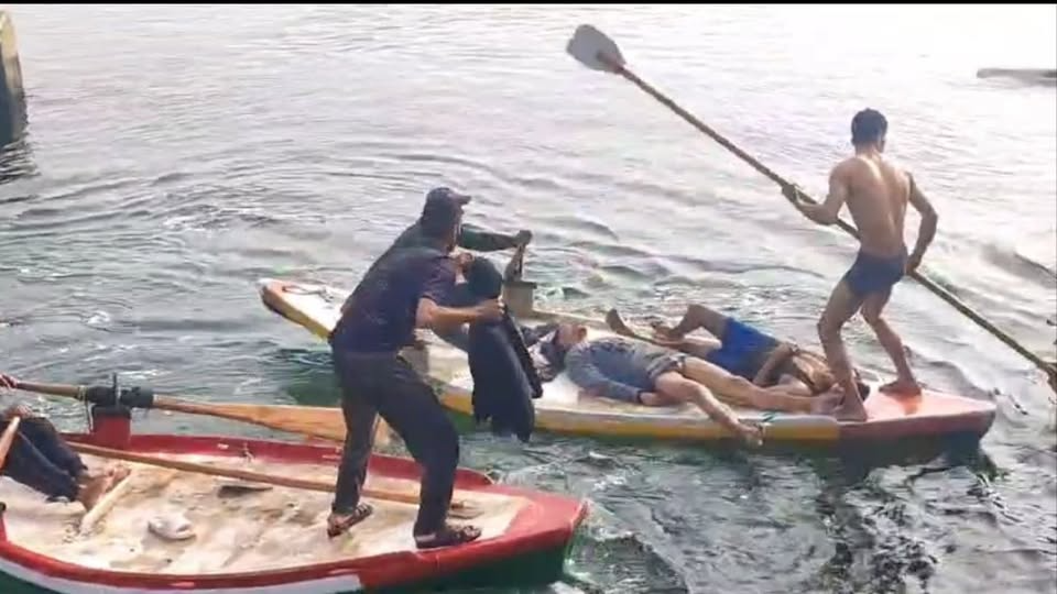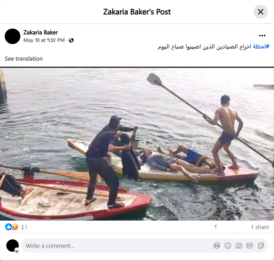 #لحظة اخراج الصيادين الذين اصيبوا صباح اليوم