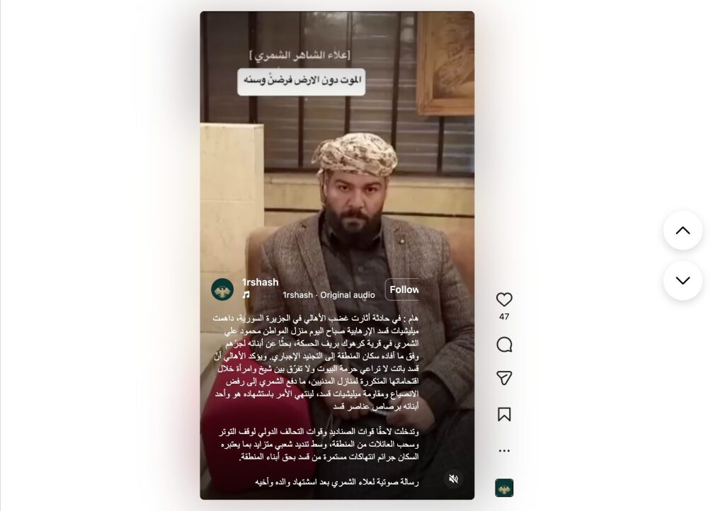 Audio message from Alaa al-Shammari after the martyrdom of his father and brother.