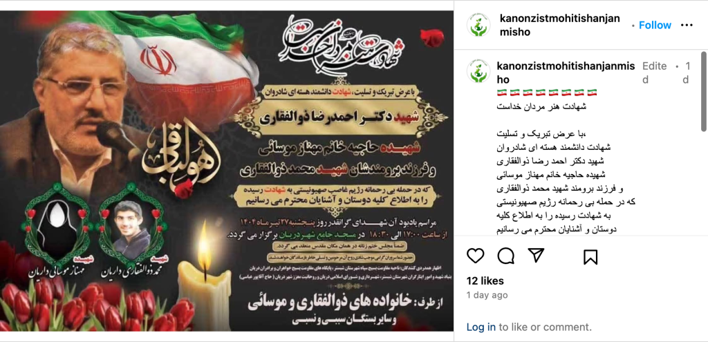 kanonzistmohitishanjanmisho Edited•1d🇮🇷🇮🇷🇮🇷🇮🇷🇮🇷🇮🇷🇮🇷🇮🇷شهادت هنر مردان خداست با عرض تبریک و تسلیت،شهادت دانشمند هسته ای شادروان شهید دکتر احمد رضا ذوالفقاری شهیده حاجیه خانم مهناز موسائی و فرزند برومند شهید محمد ذوالفقاری که در حمله بی رحمانه رژیم صهیونیستی به شهادت رسیده را به اطلاع کلیه دوستان و آشنایان محترم می رسانیم مراسم یادبود آن شهدای گرانقدر روز پنجشنبه ۲۶ تیر ۱۴۰۴ از ساعت ۱۷ الی ۳۰ : ۱۸ در مسجد جامع شهر دریان برگزار میگردد خانواده های ذوالفقاری و موسائی #درگاه_پیام_رسان #رسانه_مرجع_میشو https://chat.whatsapp.com/EshmqCWSlIvCIcECLj39NN