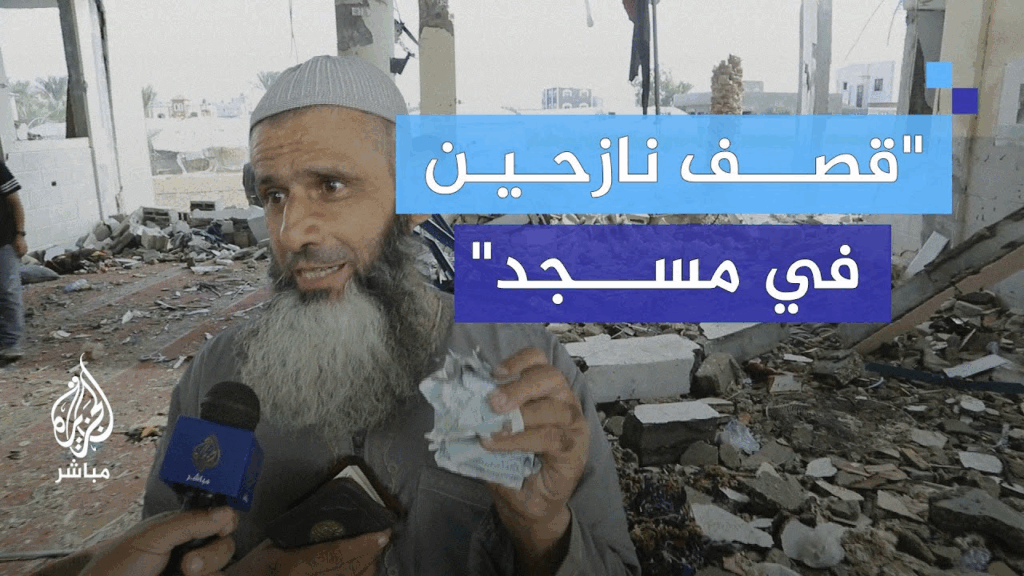 Deir al-Balah: 21 martyrs and extensive destruction in the bombing of the Al-Aqsa Martyrs Mosque, which houses displaced persons.