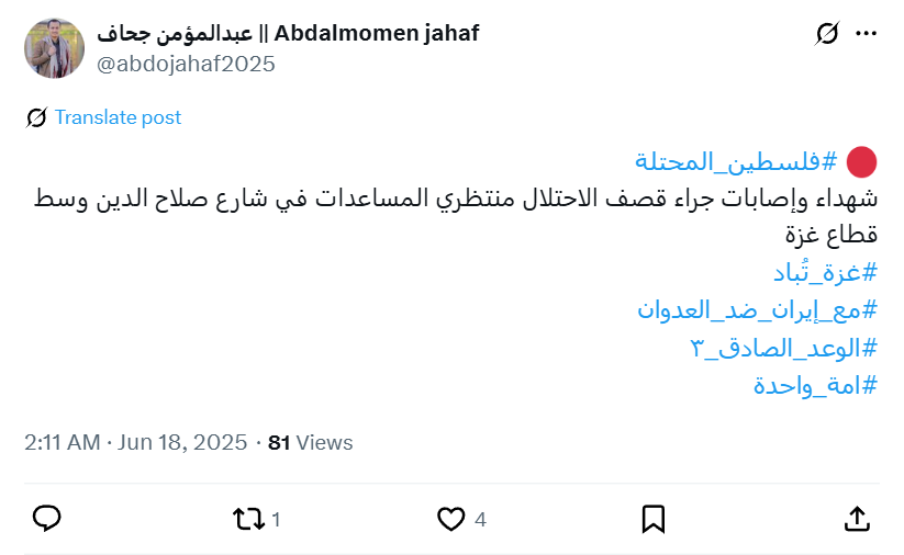 Martyrs and injuries as a result of the occupation's bombing of people waiting for aid on Salah al-Din Street in the central Gaza Strip.