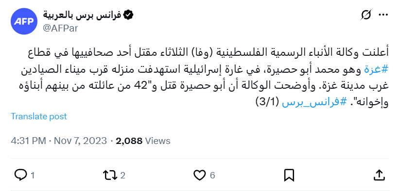 Archive URL: https://airwars.org/source/x-com-afpar-1721883137532399920-2023-11-07-133145/