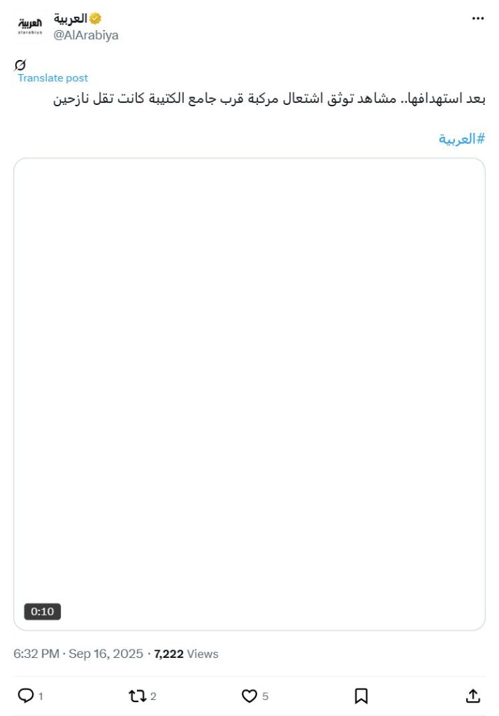 Archive URL: https://airwars.org/source/x-com-alarabiya-1967989943646523505-2025-09-16-163220/
