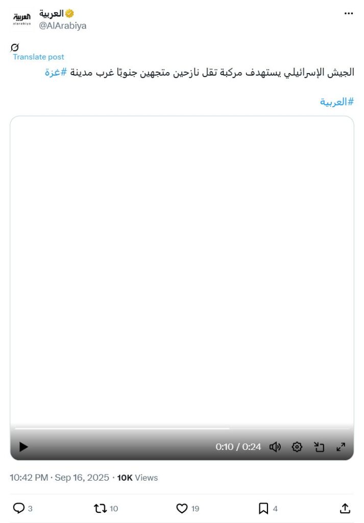 URL: https://x.com/AlArabiya/status/1968052827411890504