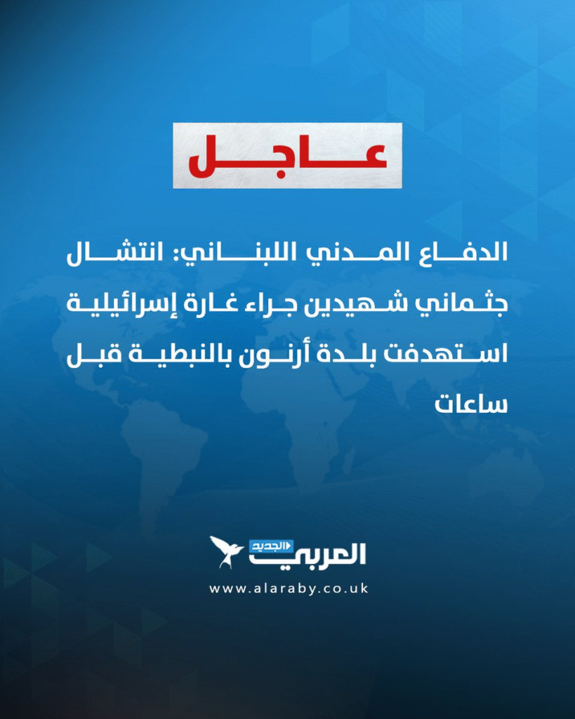 #عاجل | الدفاع المدني اللبناني: انتشال جثماني شهيدين جراء غارة إسرائيلية استهدفت بلدة أرنون بالنبطية قبل ساعات