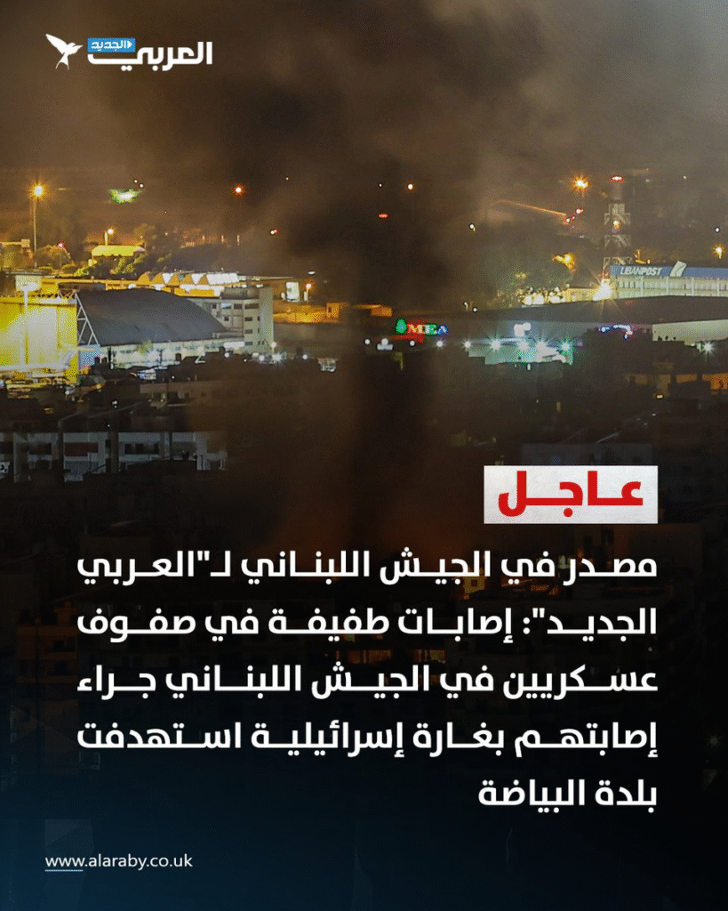 #Urgent | A Lebanese army source told Al-Araby Al-Jadeed: Minor injuries among Lebanese army soldiers as a result of an Israeli airstrike targeting the town of Al-Bayada.