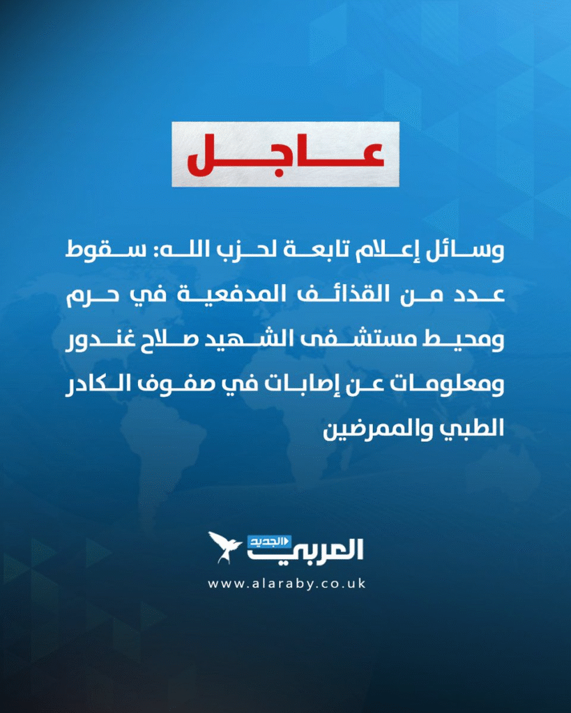 وسائل إعلام تابعة لحزب الله: سقوط عدد من القذائف المدفعية في حرم ومحيط مستشفى الشهيد صلاح غندور ومعلومات عن إصابات في صفوف الكادر الطبي والممرضين