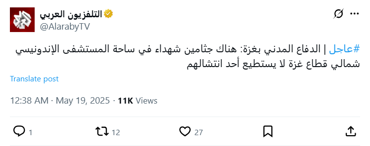 #Urgent | Gaza Civil Defense: There are bodies of martyrs in the courtyard of the Indonesian Hospital in the northern Gaza Strip that no one can recover.