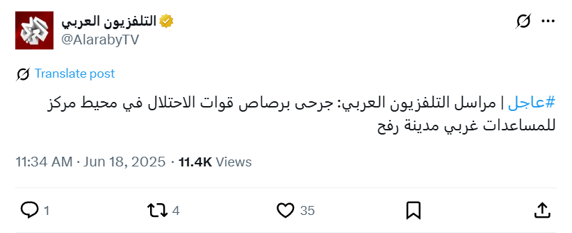 #Urgent | Al Arabiya TV correspondent: Wounded by Israeli occupation forces' gunfire near an aid center west of Rafah