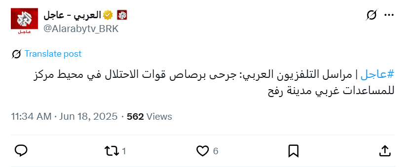 #Urgent | Al Arabiya TV correspondent: Wounded by Israeli occupation forces' gunfire near an aid center west of Rafah