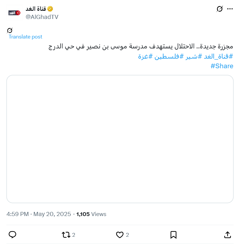 A new massacre... The occupation targets the Musa bin Nusair School in the Al-Daraj neighborhood.
