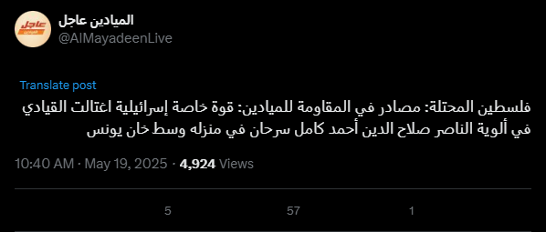 URL: https://x.com/AlMayadeenLive/status/1924369566081179727