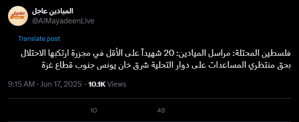 URL: https://x.com/AlMayadeenLive/status/1934857380002430985