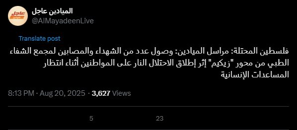 URL: https://x.com/AlMayadeenLive/status/1958215786473849184