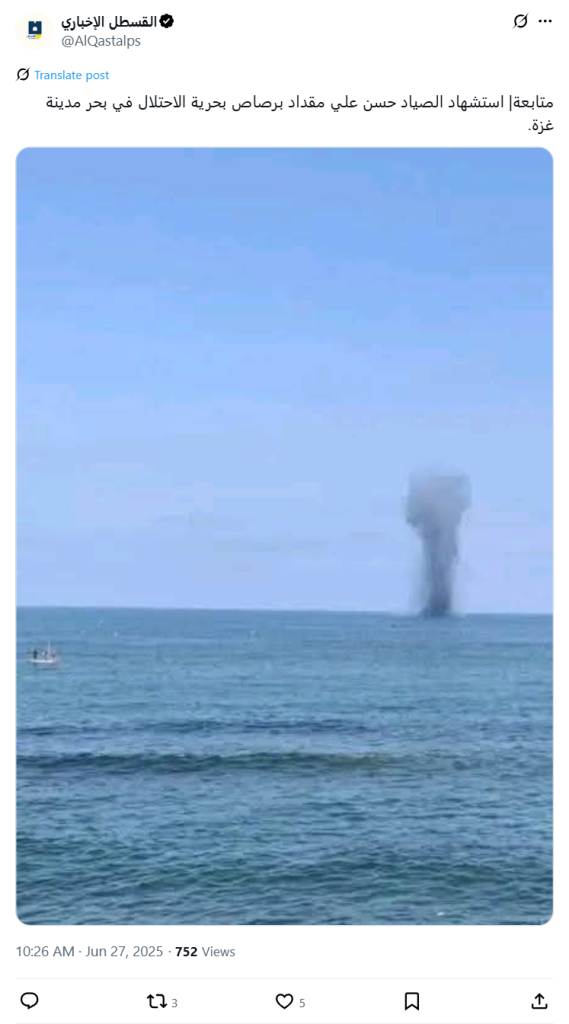 متابعة| استشهاد الصياد حسن علي مقداد برصاص بحرية الاحتلال في بحر مدينة غزة.