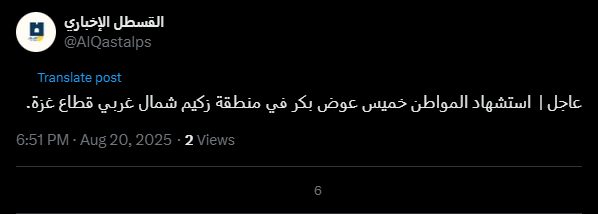 Urgent | Citizen Khamis Awad Bakr martyred in the Zikim area, northwest of the Gaza Strip.