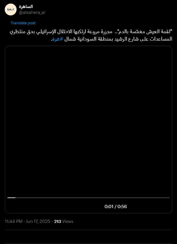 "لقمة العيش مغمّسة بالدم".. مجزرة مروعة ارتكبها الاحتلال الإسرائيلي بحق منتظري المساعدات على شارع الرشيد بمنطقة السودانية شمال #غزة.