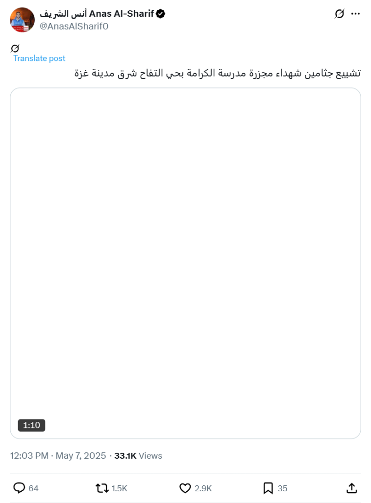 Funeral of the martyrs of the Al-Karama School massacre in the Al-Tuffah neighborhood, east of Gaza City.