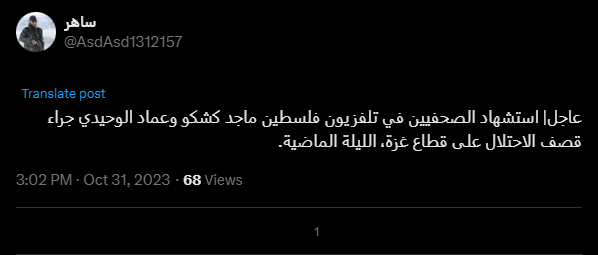 Urgent | Palestine TV journalists Majed Kashko and Imad al-Wahidi were martyred as a result of the Israeli occupation's bombing of the Gaza Strip last night.