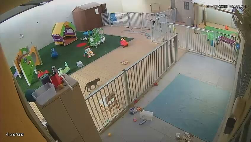Video shows explosion of daycare center - to me it seems like it's AI generated as the image right before the explosion changes, and the cat disappears.
