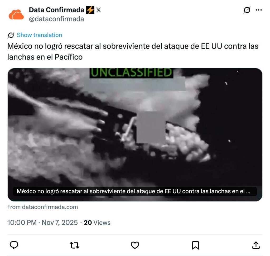 Mexico failed to rescue the survivor of the US attack on the boats in the Pacific