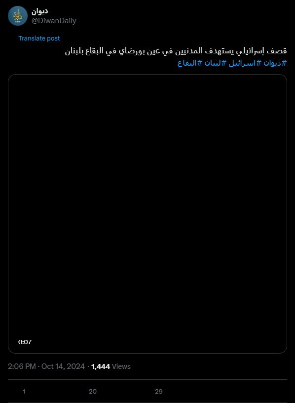 Israeli bombing targets civilians in Ain Bourday in the Bekaa Valley, Lebanon. #Diwan #Israel #Lebanon #Bekaa