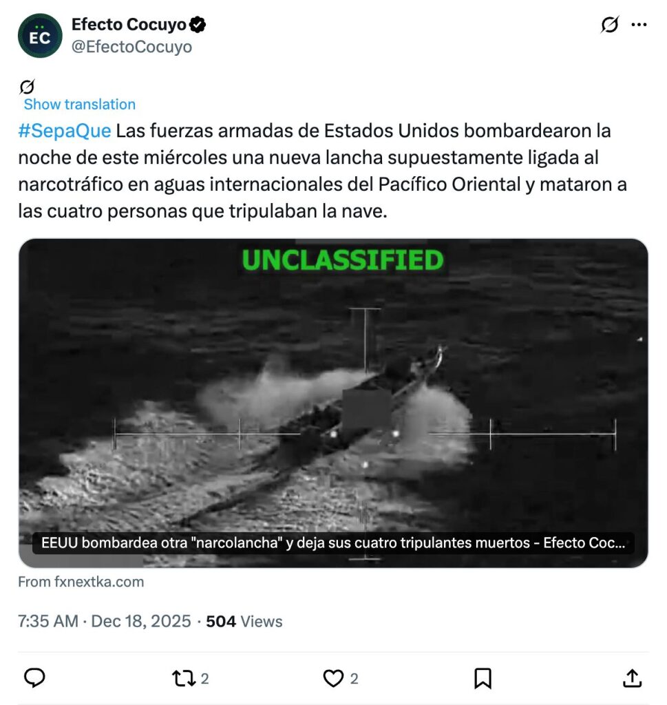 Archive URL: https://airwars.org/source/x-com-efectococuyo-2001647629885935995-2025-12-18-133558/