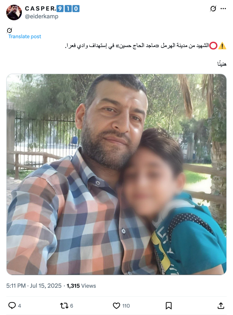 الشهيد من مدينة الهرمل «ماجد الحاج حسين» في إستهداف وادي فعرا.
