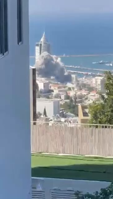 Translated Video Transcript: Footage of impact on building in Haifa.