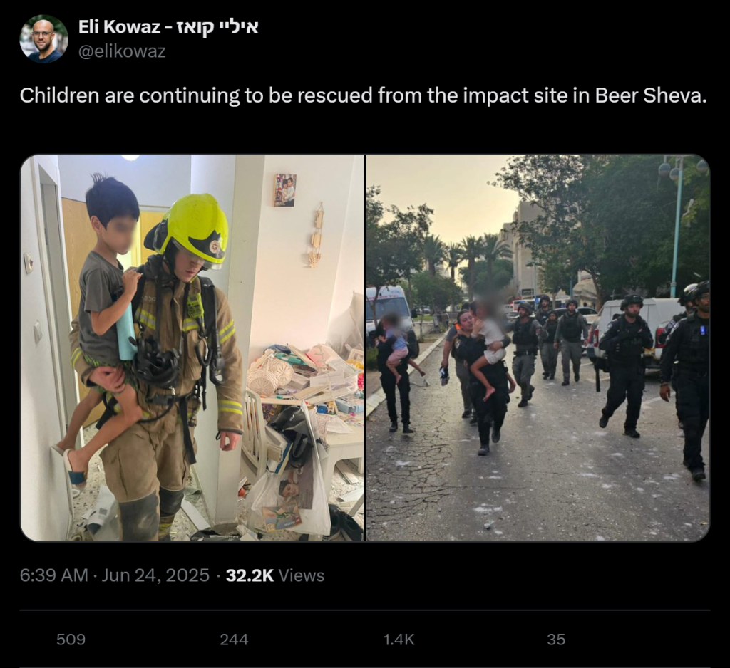 Children are continuing to be rescued from the impact site in Beer Sheva.