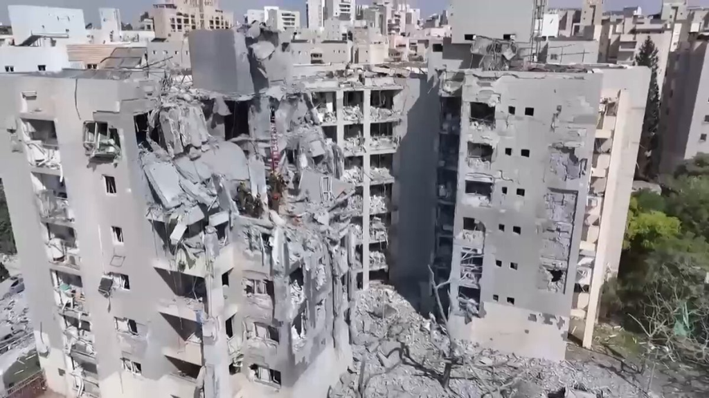 Drone footage of the Beer Sheva attack, the victims were in safe rooms