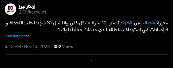 مجزرة #جباليا في #غزة: تدمير 12 منزلًا بشكل كلي وانتشال 31 شهيداً حتى اللحظة و 9 إصابات في استهداف منطقة نادي خدمات جباليا بلوك 1