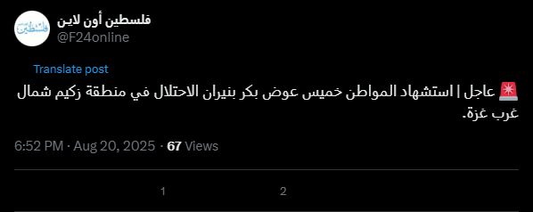 Urgent | Citizen Khamis Awad Bakr martyred by Israeli occupation fire in the Zikim area, northwest of Gaza.