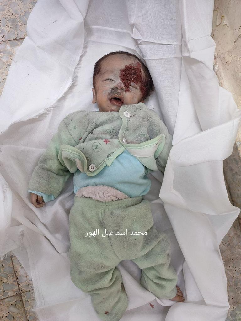 هذا الطفل قد ارتقى قبل قليل بعد استهداف منزل يعود لعائلة صيدم في النصيرات.