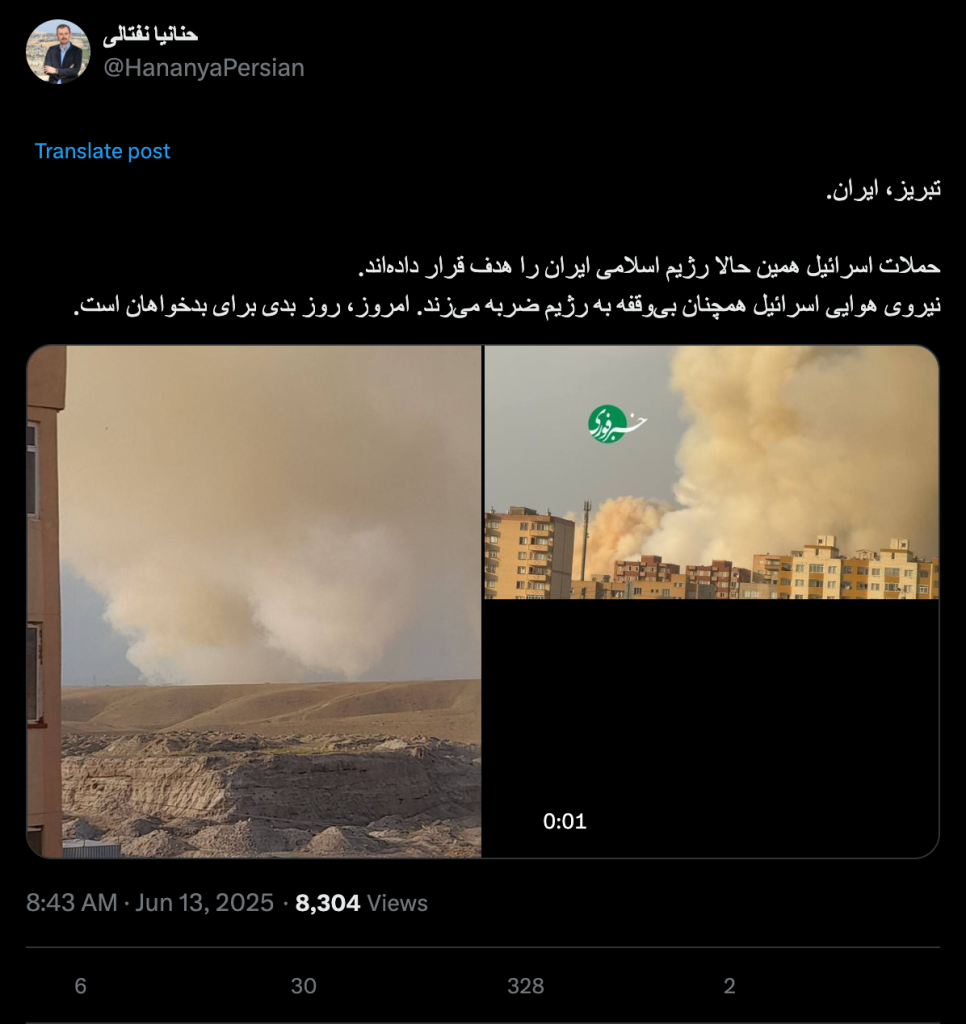 نیروی هوایی اسرائیل همچنان بیوقفه به رژیم ضربه میزند. امروز، روز بدی برای بدخواهان است.
