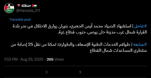 #Urgent | Fisherman Mohammed Ayman Al-Jaabari was killed by Israeli gunfire off the coast of Al-Qarara town, northwest of Khan Yunis, in the southern Gaza Strip.