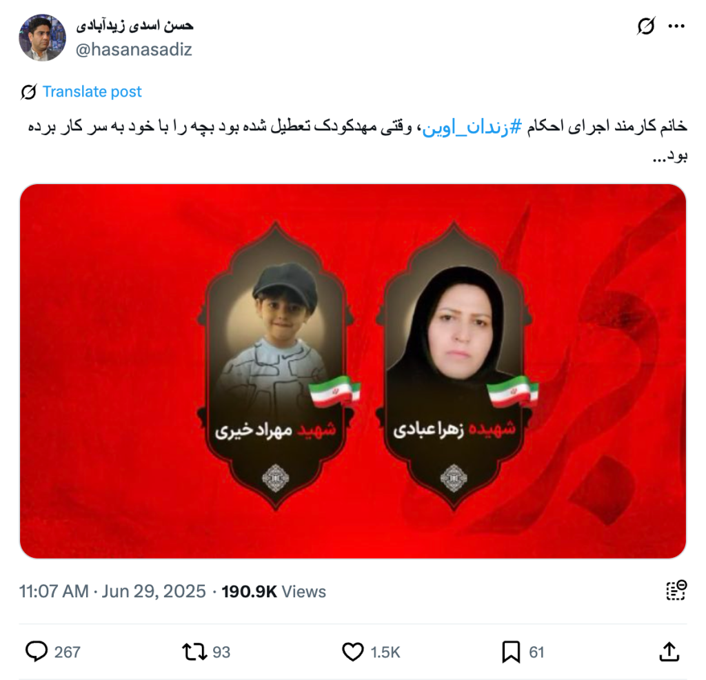 خانم کارمند اجرای احکام #زندان_اوین، وقتی مهدکودک تعطیل شده بود بچه را با خود به سر کار برده بود…