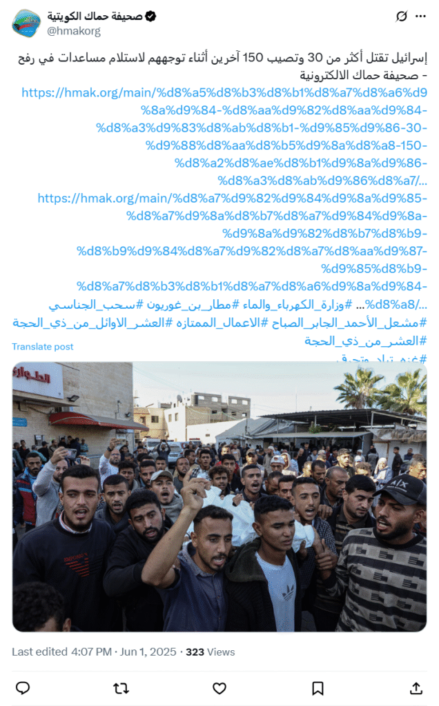 Israel kills more than 30 and injures 150 others on their way to receive aid in Rafah - Hamak Electronic Newspaper https://hmak.org/main/%d8%a5%d8%b3%d8%b1%d8%a7%d8%a6%d9%8a%d9%84-%d8%aa%d9%82%d8%aa%d9%84-%d8%a3%d9%83%d8%ab%d8%b1-%d9%85%d9%86-30-%d9%88%d8%aa%d8%b5%d9%8a%d8%a8-150-%d8%a2%d8%ae%d8%b1%d9%8a%d9%86-%d8%a3%d8%ab%d9%86%d8%a7/… #Ministry_of_Electricity_and_Water #Ben_Gurion_Airport #Withdrawal_of_Nationalities #Mishaal_Al-Ahmad_Al-Jaber_Al-Sabah #Excellent_Works #The_First_Ten_Days_of_Dhu_Al_Hijjah #The_Ten_Days_of_Dhu_Al_Hijjah #Gaza_Is_Destructing_and_Burning #President_of_State1 #Ministry_of_Electricity_and_Water #Ben_Gurion_Airport #Withdrawal_of_Nationality #Mishaal_Al-Ahmad_Al-Jaber_Al-Sabah #Excellent_Works #The_First_Ten_Days_of_Dhu_Al_Hijjah #The_Ten_Days_of_Dhu_Al_Hijjah #Gaza_Is_Destructing_and_Burning #President_of_State #The_Ruling_Family #High_School #Kuwait_Stock_Exchange #Jawad_Al_Aimmah #Physics_Eleventh_Scientific #Council_of_Ministers #Gaza_Is_Dying_of_Hunger #Al-Hilal_Al-Qadisiyah #Al-Arabi_Al-Jahra #Nasser_Al-Ghanim #China #Ahmad_Al-Abdullah_Al-Sabah #Sanaa_Airport #Club_World_Cup #UEFA_Champions_League #Kuwait_earthquake #Sudan_wins #The_blessed_ten_days #Ali_Maaloul #UEFA_Champions_League #Dhu_Al_Hijjah #Crown_Prince