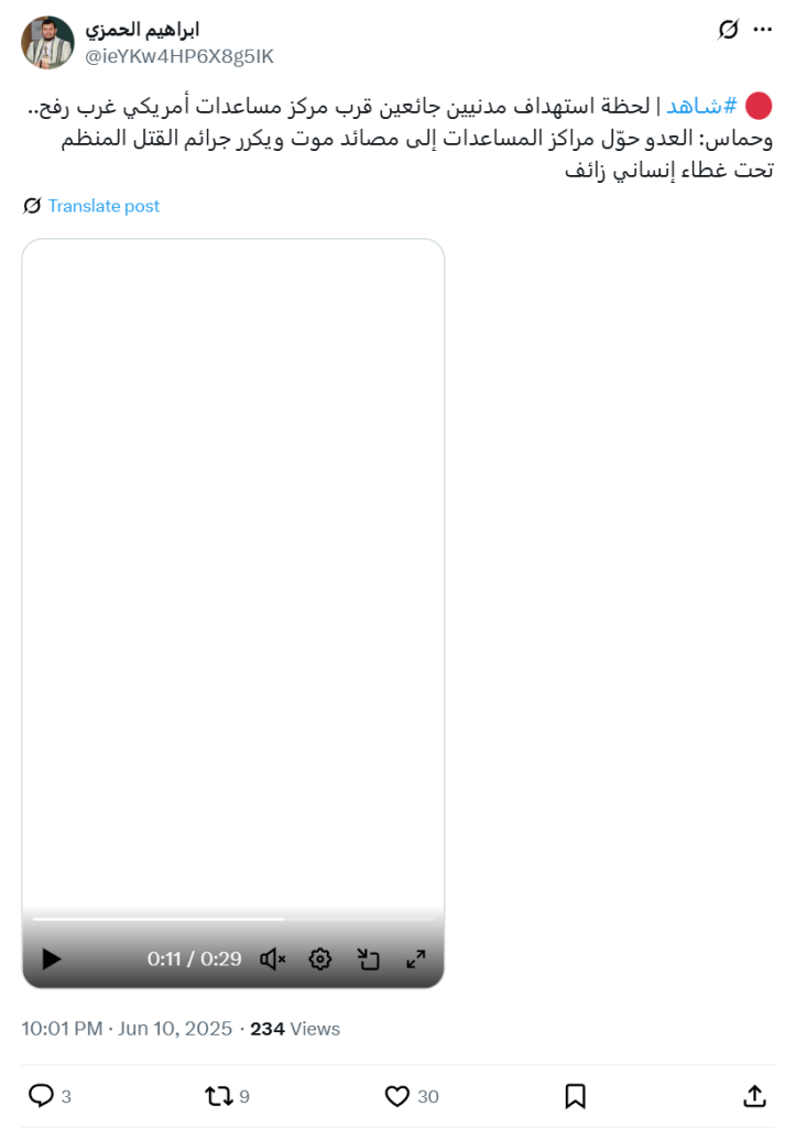 #شاهد | لحظة استهداف مدنيين جائعين قرب مركز مساعدات أمريكي غرب رفح..