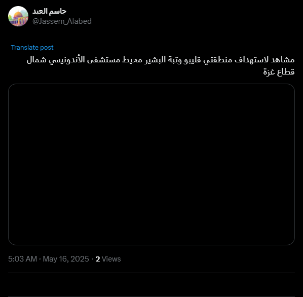 Scenes of the targeting of the Qalibo and Tabat al-Basheer areas, surrounding the Indonesian Hospital, north of the Gaza Strip.