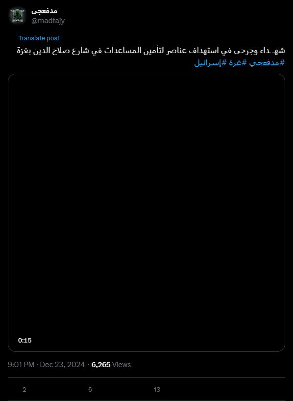Martyrs and wounded in the targeting of aid workers on Salah al-Din Street in Gaza. #artillery #Gaza #Israel