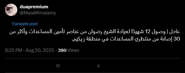عاجل | وصول 12 شهيدًا لعيادة الشيخ رضوان من عناصر تأمين المساعدات وأكثر من 30 إصابة من منتظري المساعدات في منطقة زيكيم.