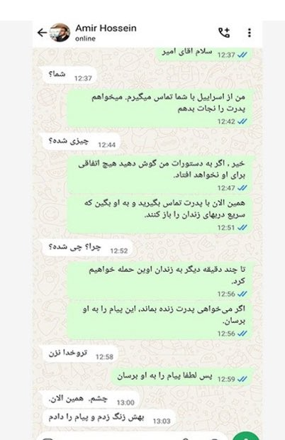 طبق گزارش اختصاصی فاکسنیوز و اسنادی که یک منبع اطلاعاتی اسرائیلی منتشر کرده، مأموران اسرائیلی با امیرحسین فرزادی تماس گرفتند و هشدار دادند که حملهای در راه است. امیر پیام را به عمویش رساند و آنها تنها دقایقی پیش از آغاز حمله، فرزادی را از زندان خارج کردند. از آن زمان، اثری از او نیست.