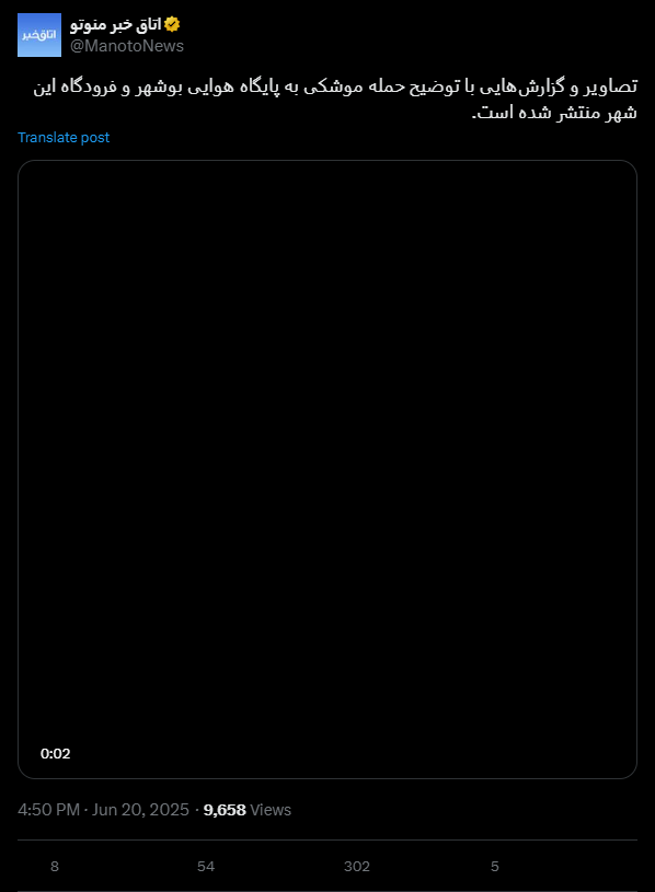 تصاویر و گزارشهایی با توضیح حمله موشکی به پایگاه هوایی بوشهر و فرودگاه این شهر منتشر شده است.