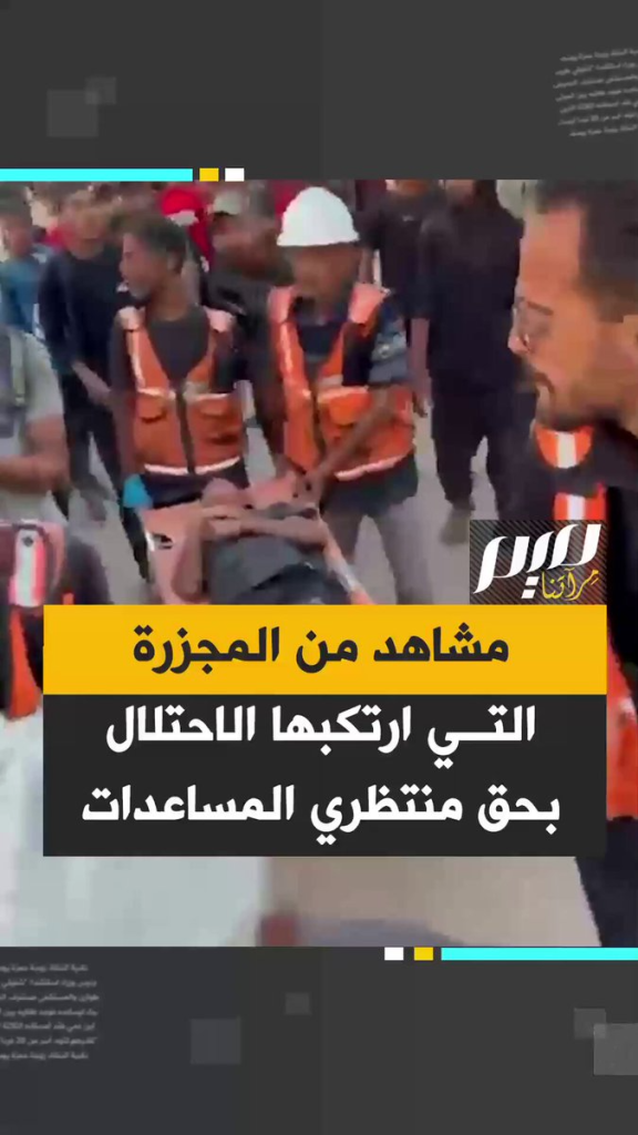 "A livelihood drenched in blood": Horrific scenes from the massacre committed by the occupation against those waiting for aid on Rashid Street in the Sudanese area, north of Gaza.
